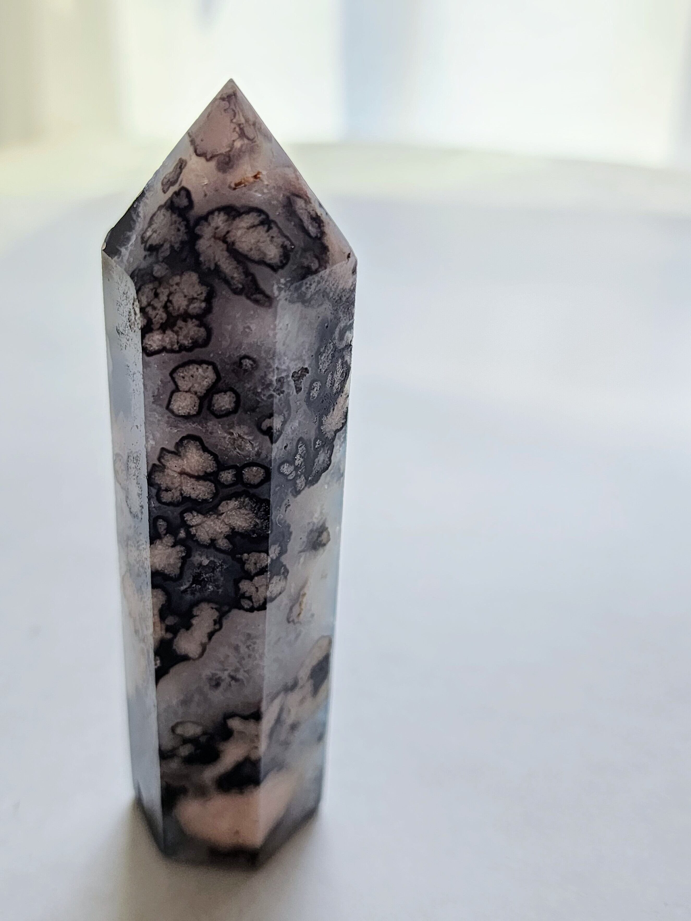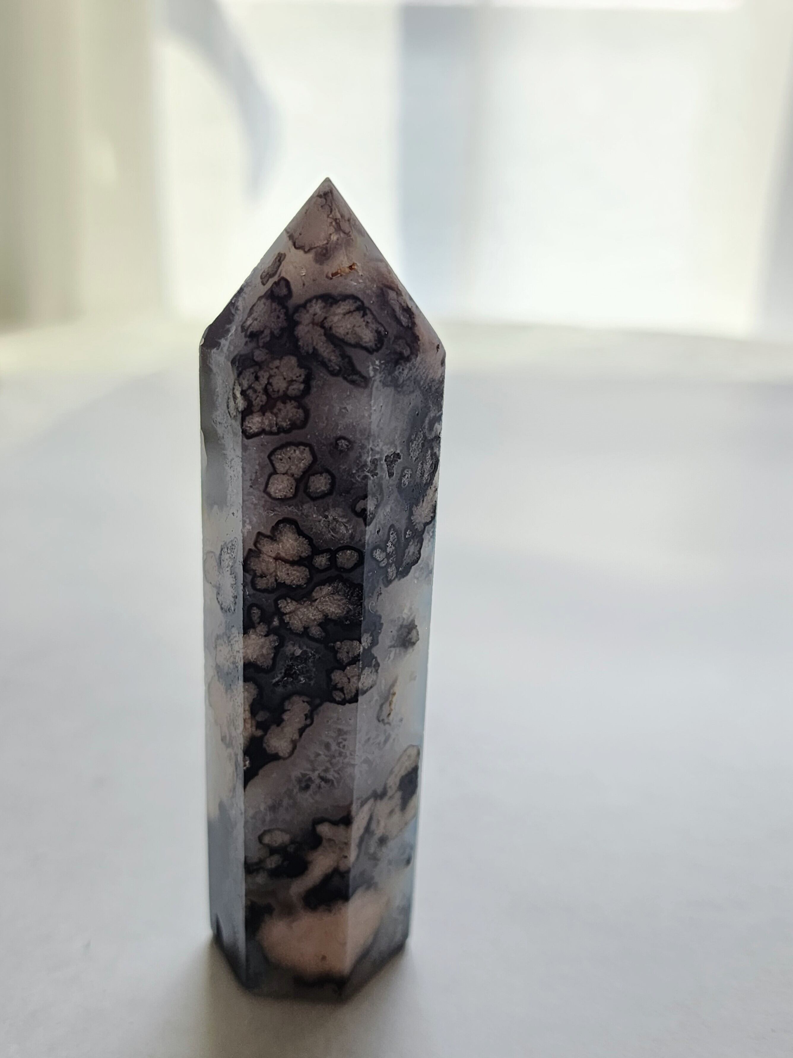夜桜瑪瑙(チェリーブロッサムアゲート)は、ネガティブなエネルギーを取り除き、心を落ち着かせ、内なる平和をもたらすとされています。特に心の癒しに効果があり、ストレスや不安を和らげ、心の傷やトラウマを癒す力があります。