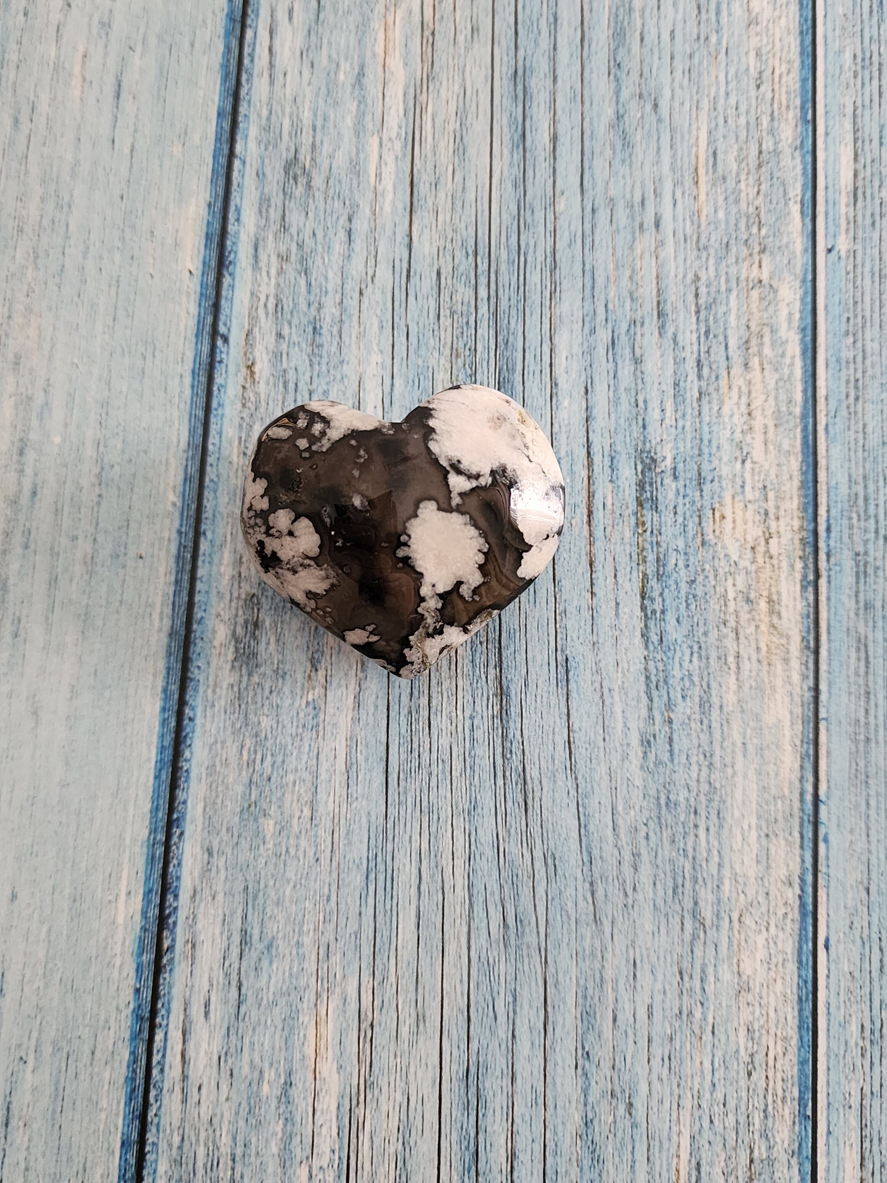 夜桜瑪瑙(チェリーブロッサムアゲート)は、ネガティブなエネルギーを取り除き、心を落ち着かせ、内なる平和をもたらすとされています。特に心の癒しに効果があり、ストレスや不安を和らげ、心の傷やトラウマを癒す力があります。