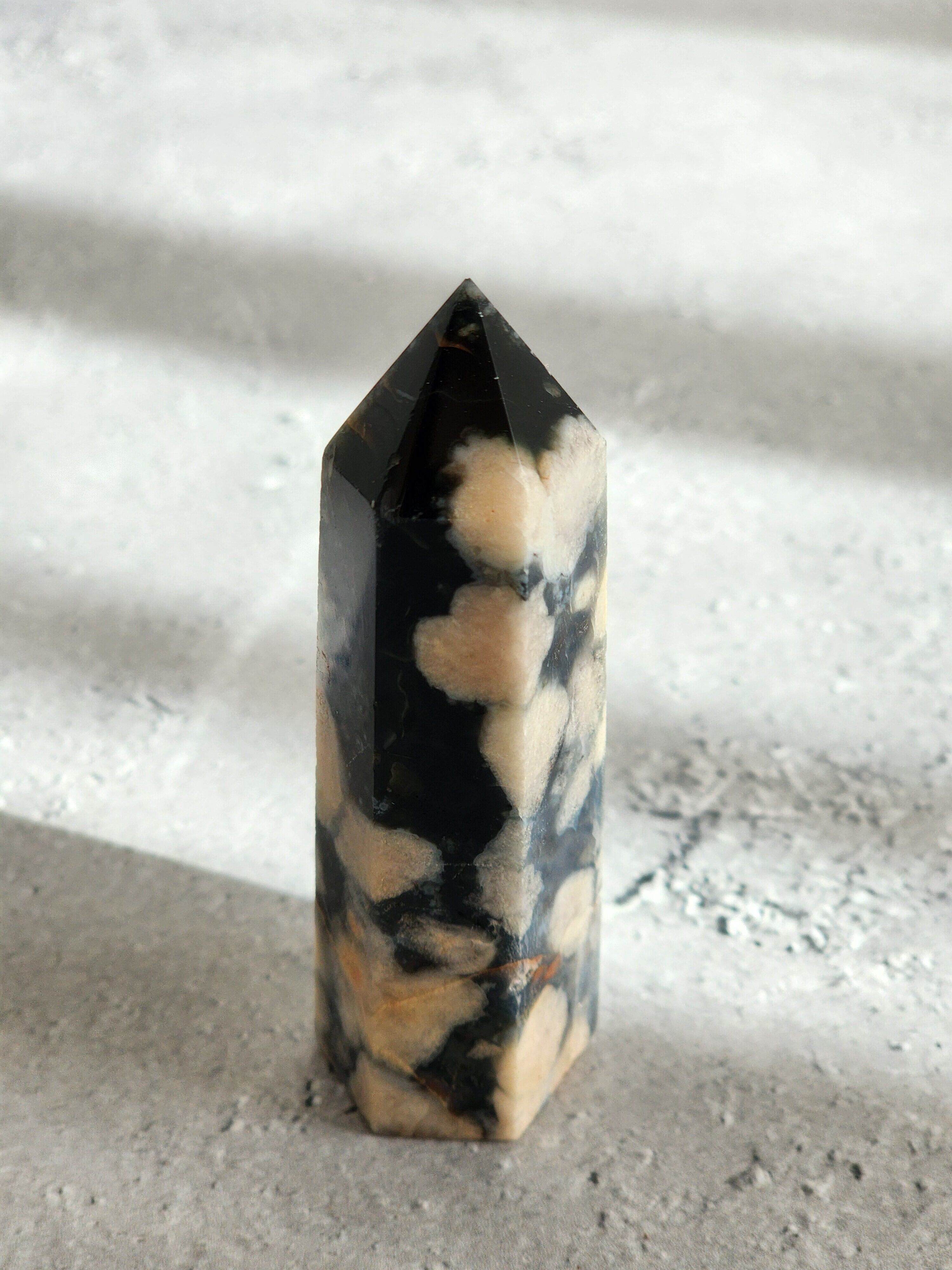 夜桜瑪瑙(チェリーブロッサムアゲート)は、ネガティブなエネルギーを取り除き、心を落ち着かせ、内なる平和をもたらすとされています。特に心の癒しに効果があり、ストレスや不安を和らげ、心の傷やトラウマを癒す力があります。